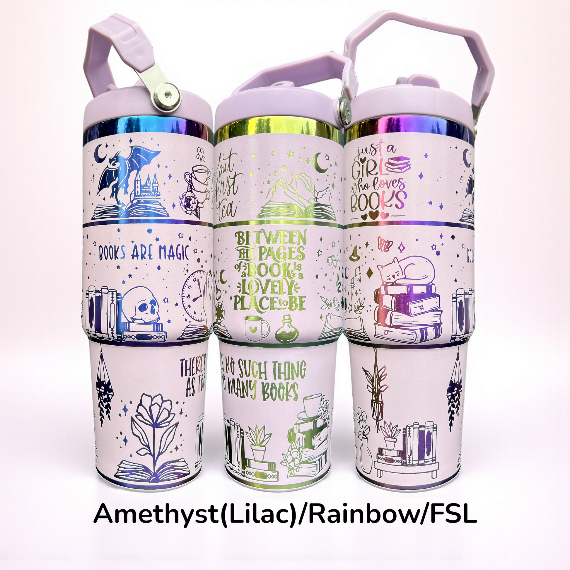 Embark on a whimsical journey with our enchanting 30oz Books are Magic tumbler! Crafted for the dreamers and romantics, this laser-engraved masterpiece is perfect for fans of fantasy and romance—lovingly dubbed "romantasy." Whether you're sipping a calming tea or a bold coffee potion, this tumbler keeps your beverages at the perfect temperature, ready to fuel your next adventure. Designed for all ages and stages, it's the perfect companion for every magical read. Indulge in fantastical tales and let your imagination run wild. After all, who says magic is only for books?