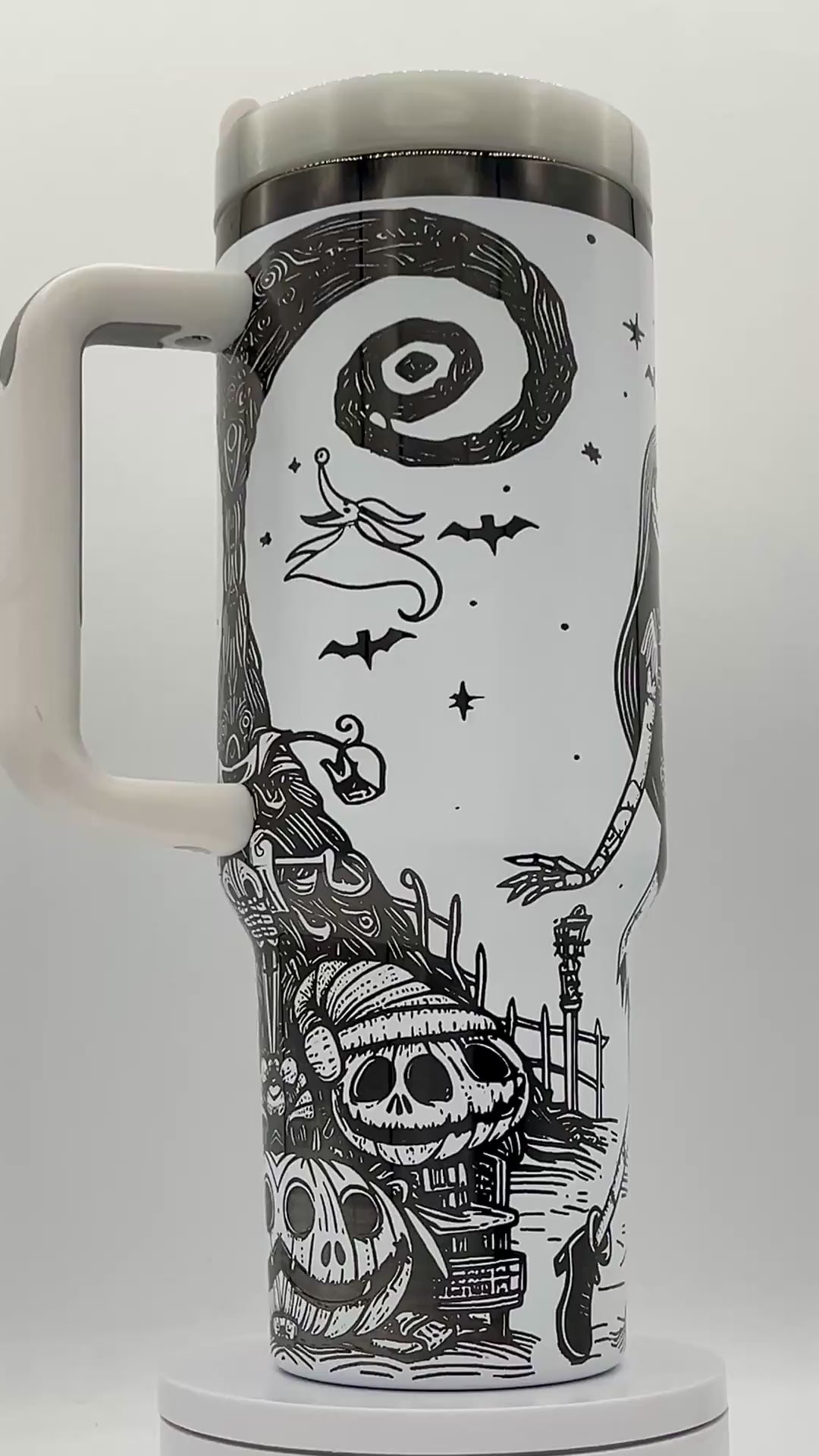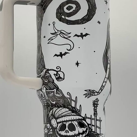 Quench your thirst for adventure with our enchanting 30oz Jack and Sally Laser Engraved Tumbler! Inspired by the whimsical charm of "The Nightmare Before Christmas," this bewitching tumbler features Jack and Sally, etched in delightful detail. Whether you're sipping on a pumpkin-spiced latte or a magical brew, keep your drink at the perfect temperature while adding a dash of spooky fun to your day. Sturdy, stylish, and spellbinding, it's the perfect companion for every fan of the fantastical! Embrace the spirit of Halloween Town and stay refreshingly cool or cozily warm, all year round!