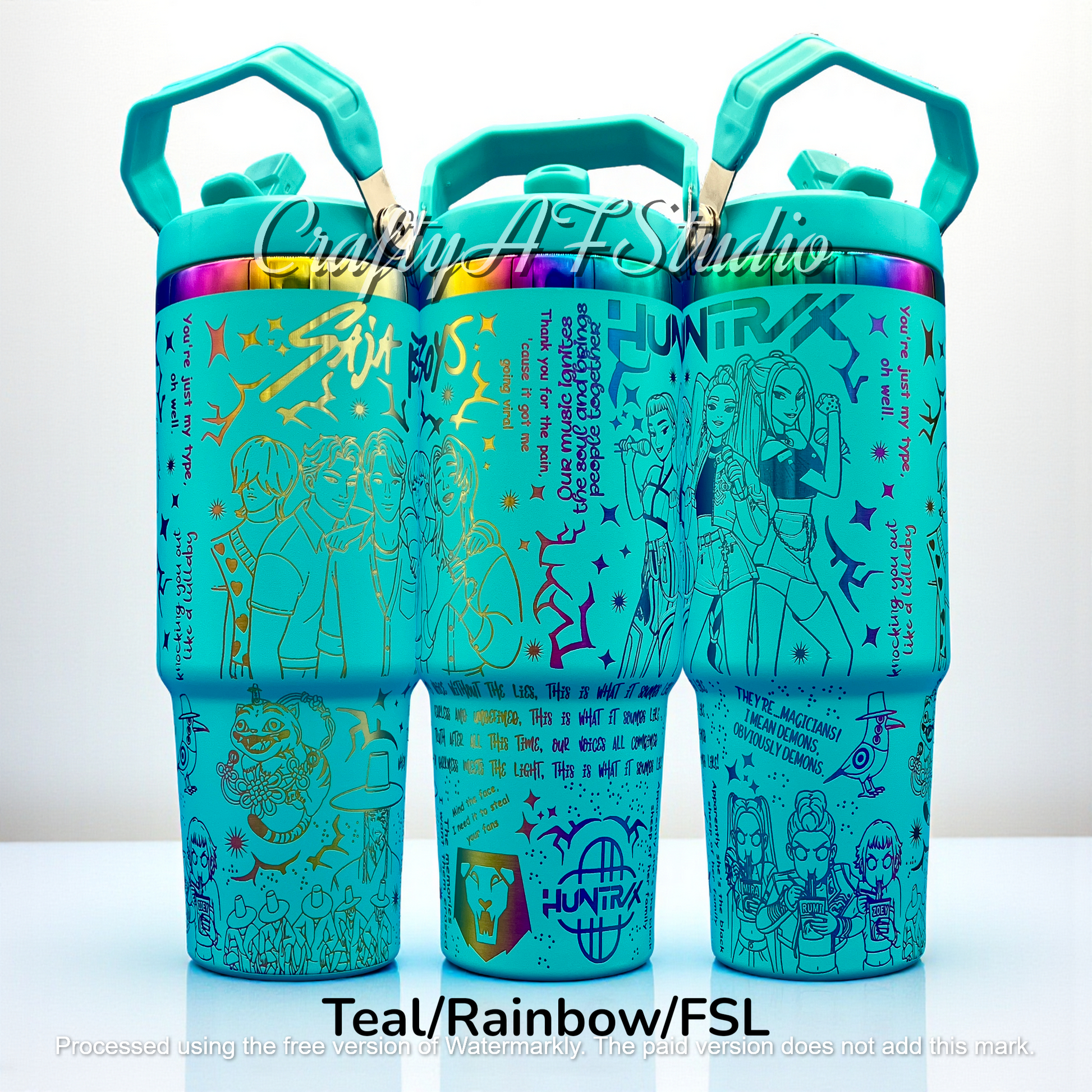 Are you ready to sip in style while battling the forces of evil? Meet the KPop Demon Hunters Tumbler, your new sidekick in hydration and demon-slaying! This 30oz powerhouse is laser engraved with the fierce elegance of the Saja Boys AND hUNTRIX, ensuring your drink stays as cool as your moves. Whether you're at a concert, on a quest, or just chilling with your favorite tunes, this tumbler is your ultimate companion. Get ready to unleash your inner hero with every sip!
