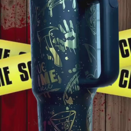 Attention all true crime aficionados and dedicated Murderinos! Introducing the ultimate beverage accomplice for your sleuthing sessions: our 40oz CSI True Crime Tumbler. Sip your favorite drink while diving into the mysteries of the criminal world. Its sleek, laser-engraved design features all the iconic elements of the thrilling true crime universe, making it the perfect partner for your podcasts or crime documentaries. Whether you're solving cold cases or just staying hydrated, this tumbler is your trusty sidekick. Remember: stay caffeinated, stay curious, and don't get murdered!