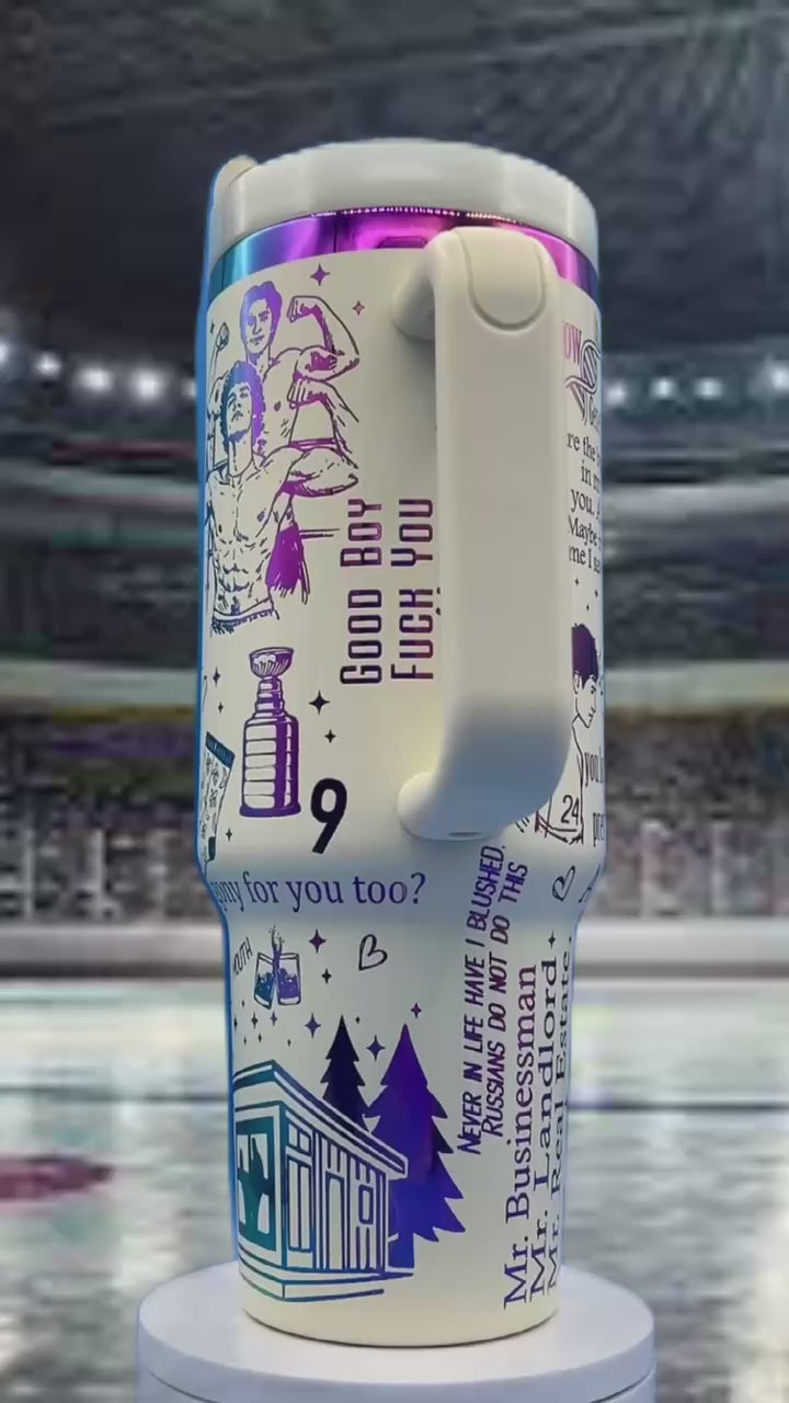 Introducing the 40oz Heated Rivalry Hockey Book Themed Tumbler – the ultimate companion for hockey enthusiasts and bookworms alike! Inspired by the adrenaline-pumping Heated Rivalry Book Series, this tumbler is your ticket to experiencing the thrill of the game without leaving your cozy reading nook.