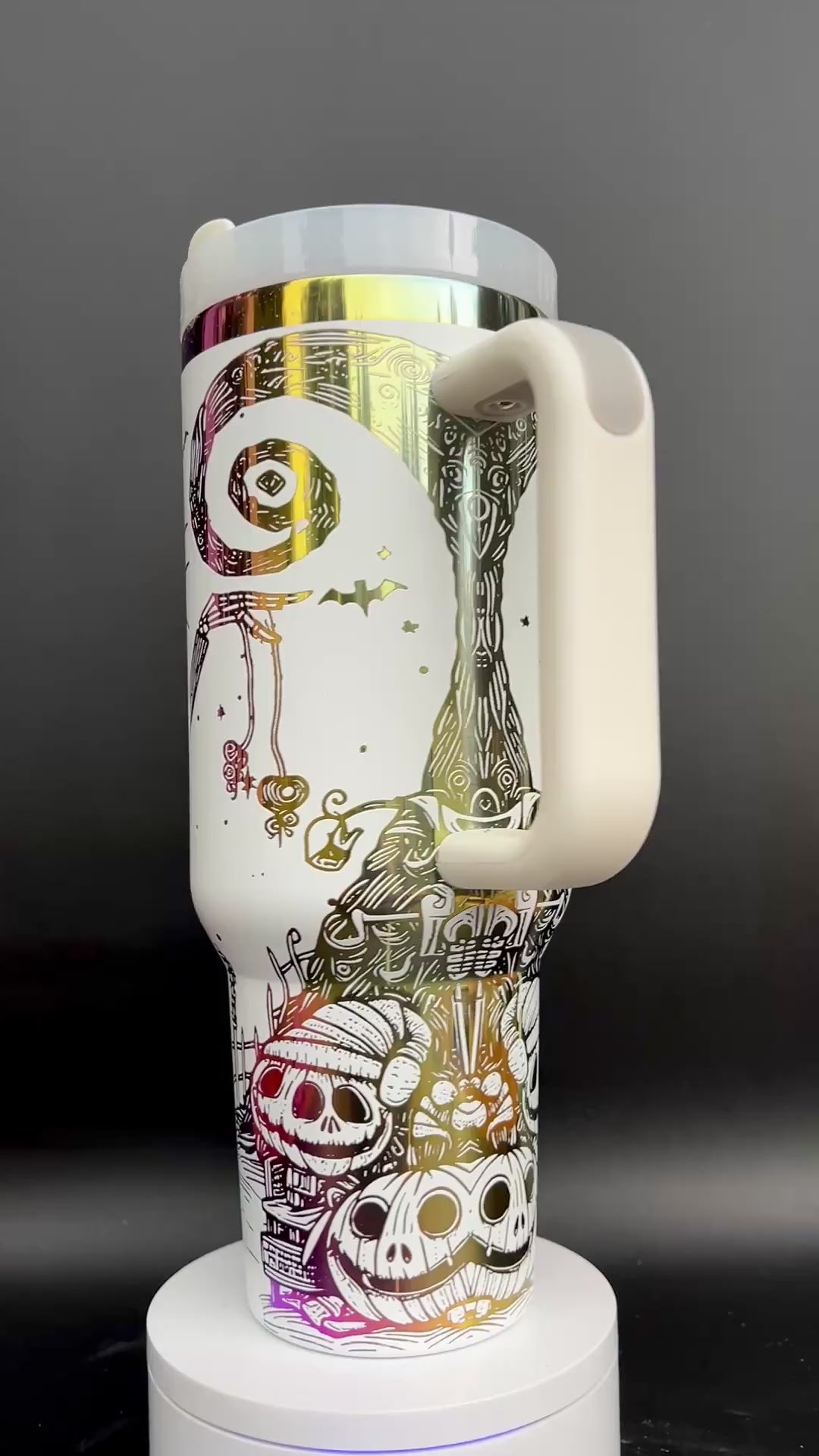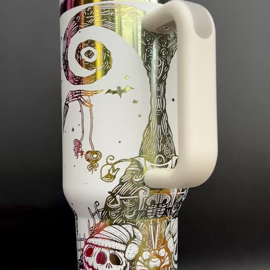 Step into a whimsical world where Nightmare Before Christmas magic meets practicality! Our 40oz Jack and Sally NBC Nightmare X-mas Laser Engraved Tumbler is the perfect companion for any enchanting adventure. Whether you're sipping on potions or keeping your drinks chillingly cool, this tumbler has got you covered. Featuring a bewitching design of Jack and Sally, intricately laser-engraved, it's sure to captivate the hearts of Halloween Town fans. Embrace your inner pumpkin king or queen and let the spook-tacular sips begin!