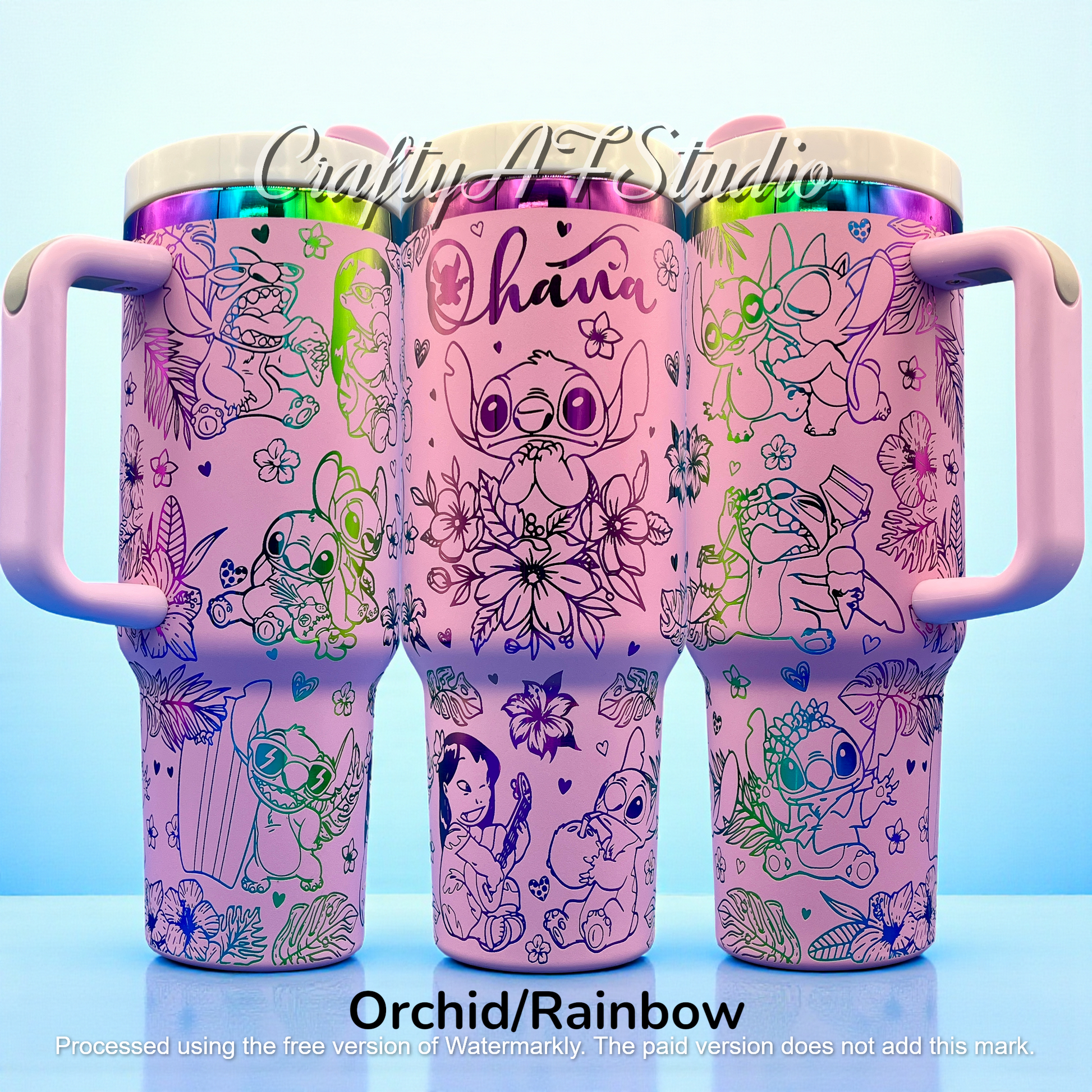 Aloha, hydration enthusiasts! Meet your new sidekick: the 40oz Ohana Tumbler , featuring our favorite intergalactic trio – Lilo, Stitch, and Angel! This laser-engraved masterpiece keeps your drinks icy or toasty, just how you like 'em. Perfect for wild adventures or chill beach days, this tumbler screams "Ohana means family" – and family means never sipping alone! So grab yours, because every sip is an interstellar fiesta!