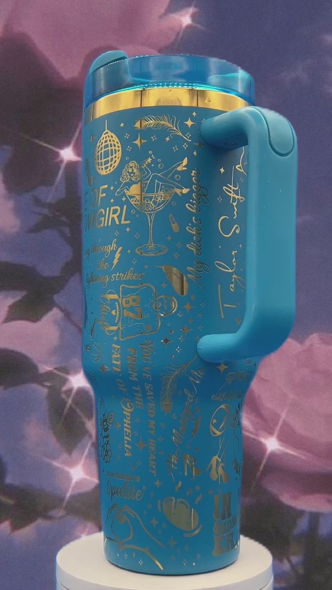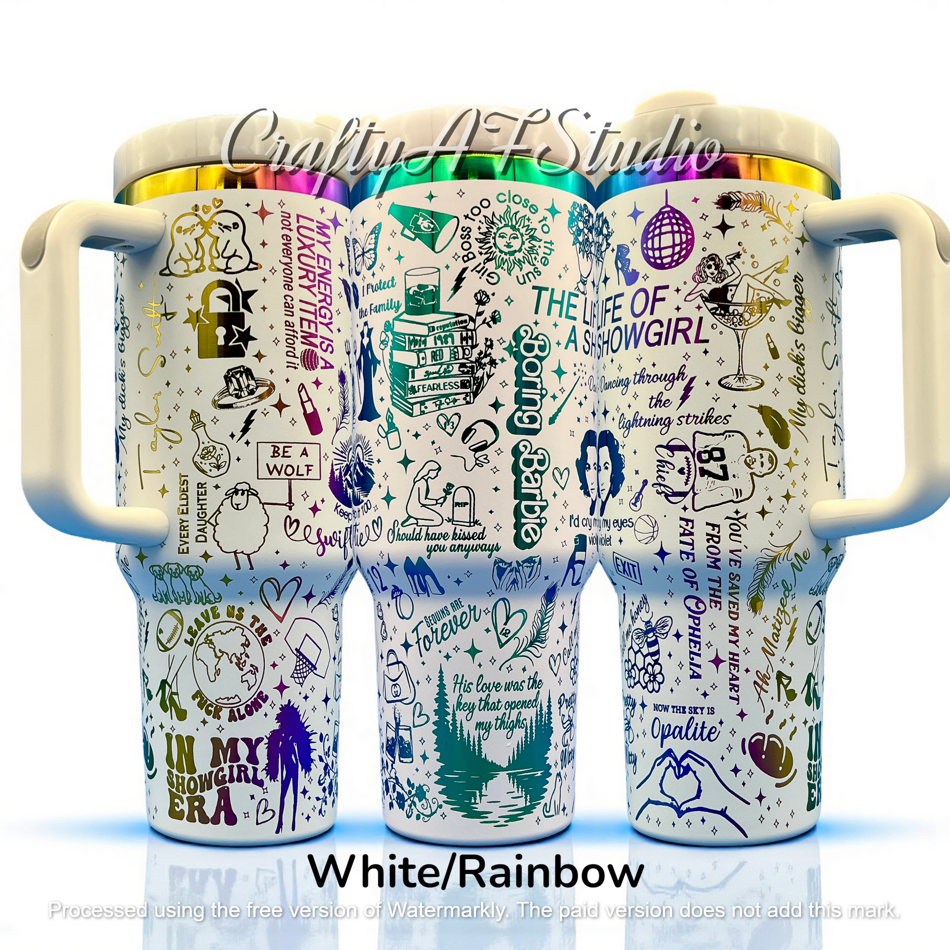 Calling all Swifties and music lovers alike! Introducing the 40oz Taylor Swiftie - Life of a Show Girl themed laser engraved tumbler that takes you straight to the front row of the most magical concerts. Whether you're belting out "CANCELLED!" or sipping your favorite drink during "Wood," this tumbler is your ultimate sidekick.