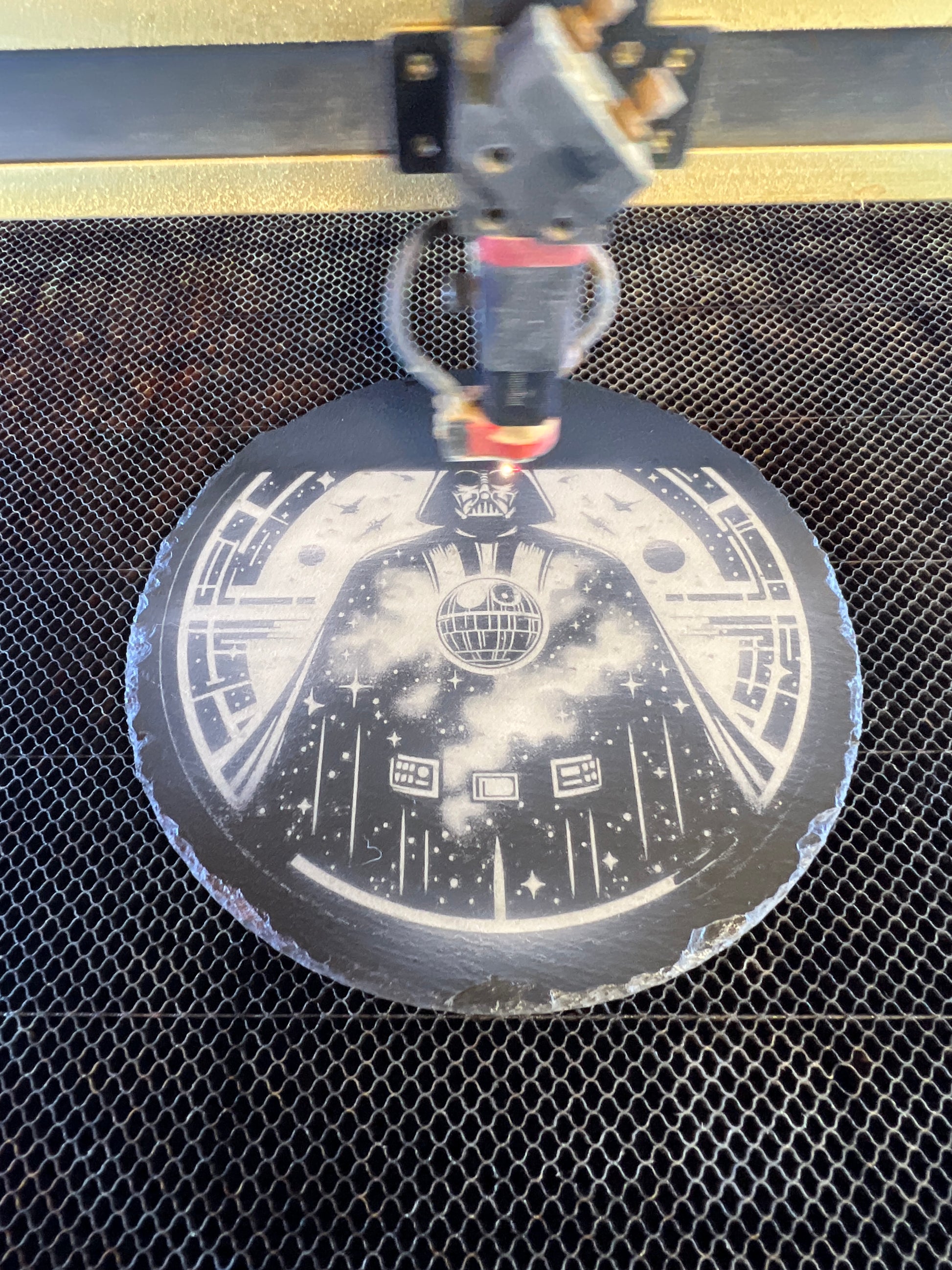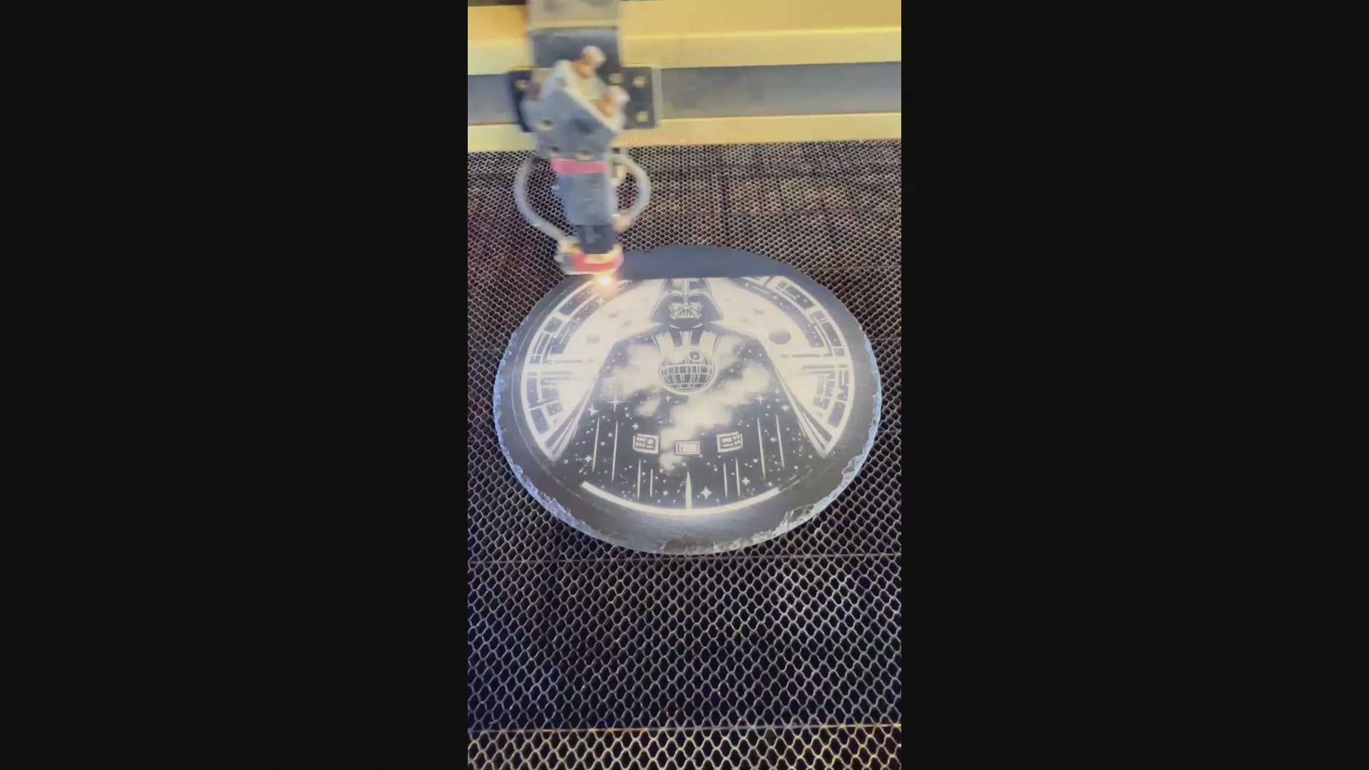 Darth Vader with Death Star Center Mast battle in background - Round engraved Slate decor