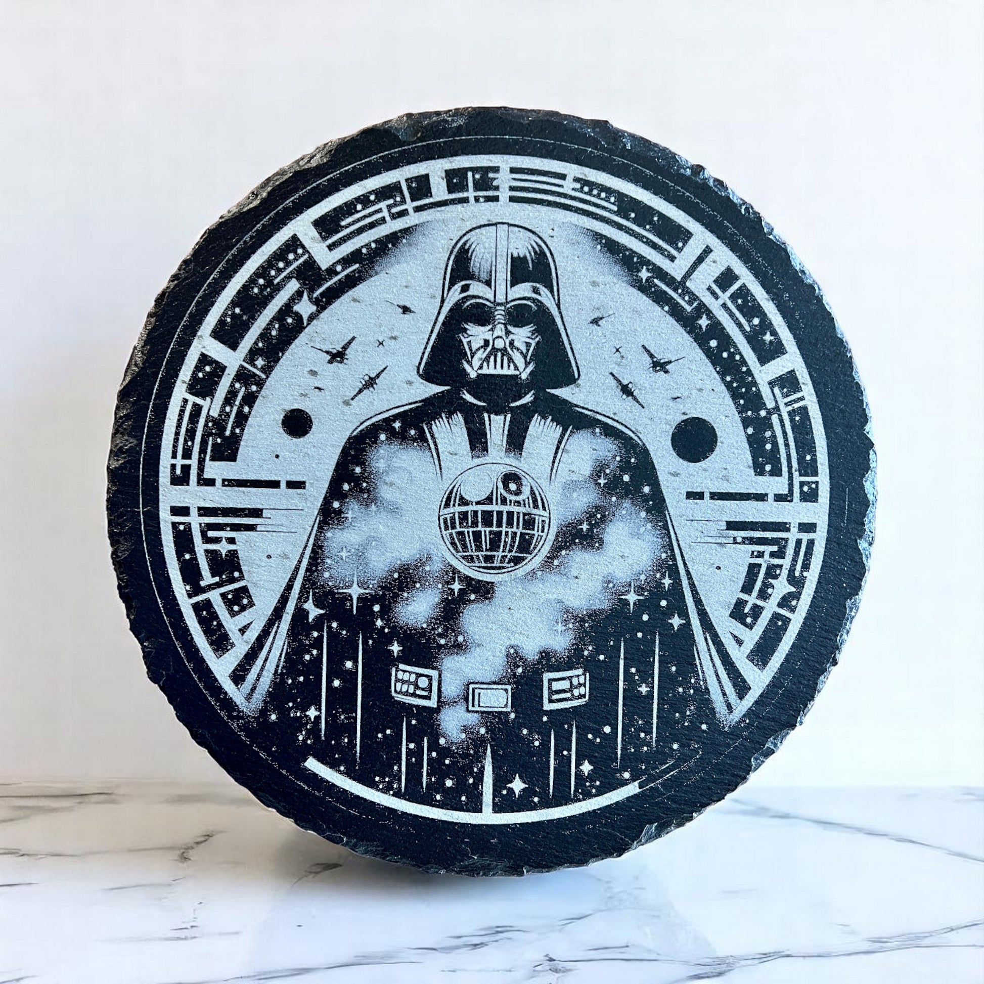 Unleash the power of the Dark Side with our stunning Round Slate Decor featuring Darth Vader! This striking piece showcases the ominous Sith Lord with the iconic Death Star, ready to bring a touch of Star Wars magic to your space. Crafted from natural slate, it’s not just decor; it’s a conversation starter! Perfect for fans of all ages, this unique artwork adds a playful yet fierce vibe to any room. May the force of style be with you!