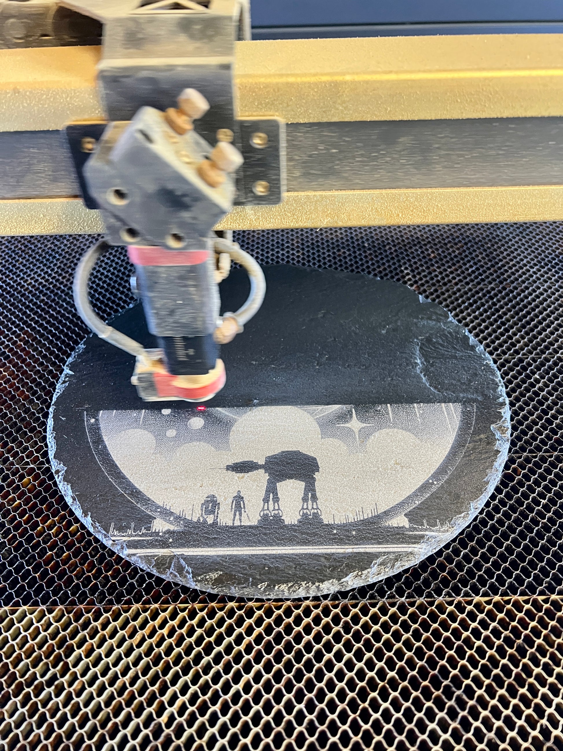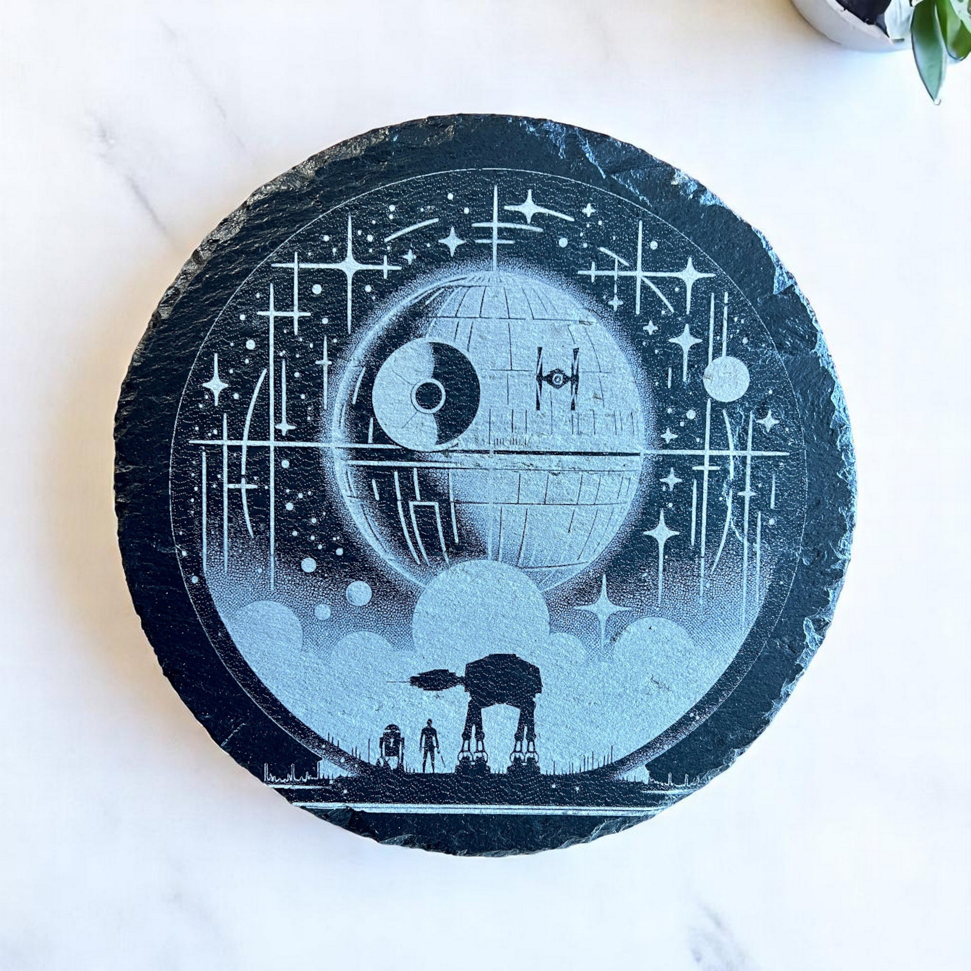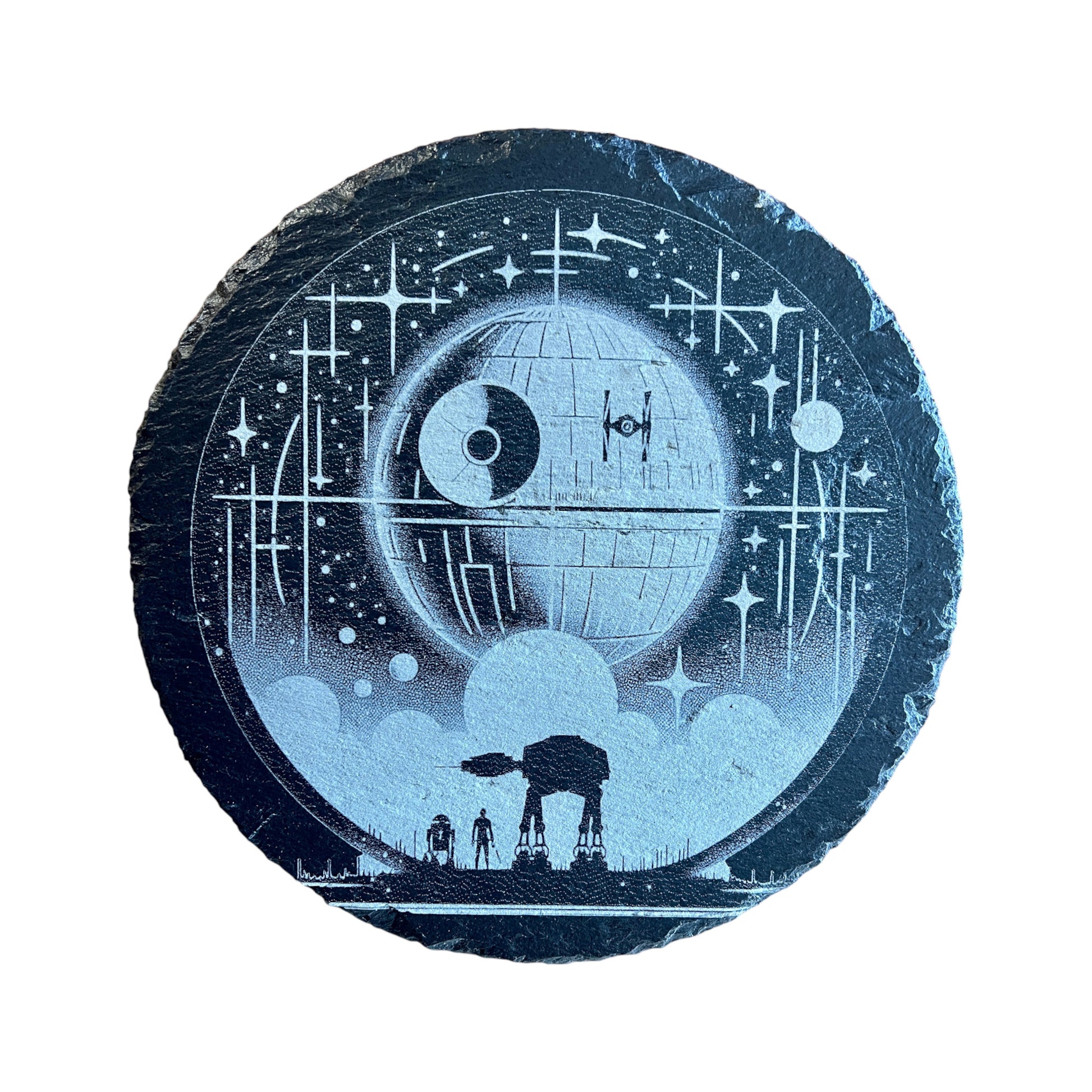 Death Star moon AT-AT walking engraved slate decor - Star Wars Themed