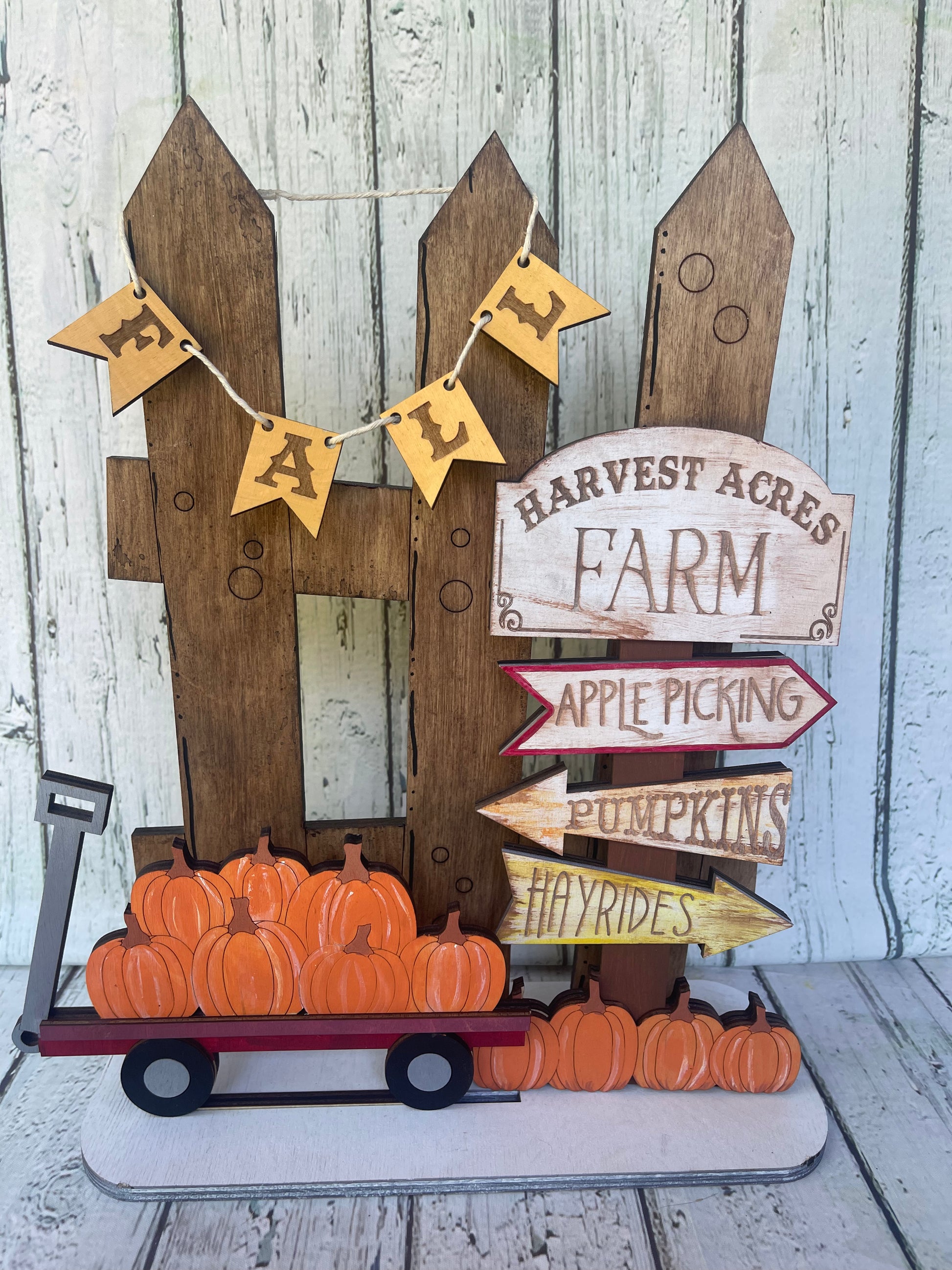 this super cute fence set is complete with a wagon to carry all the pumpkins!