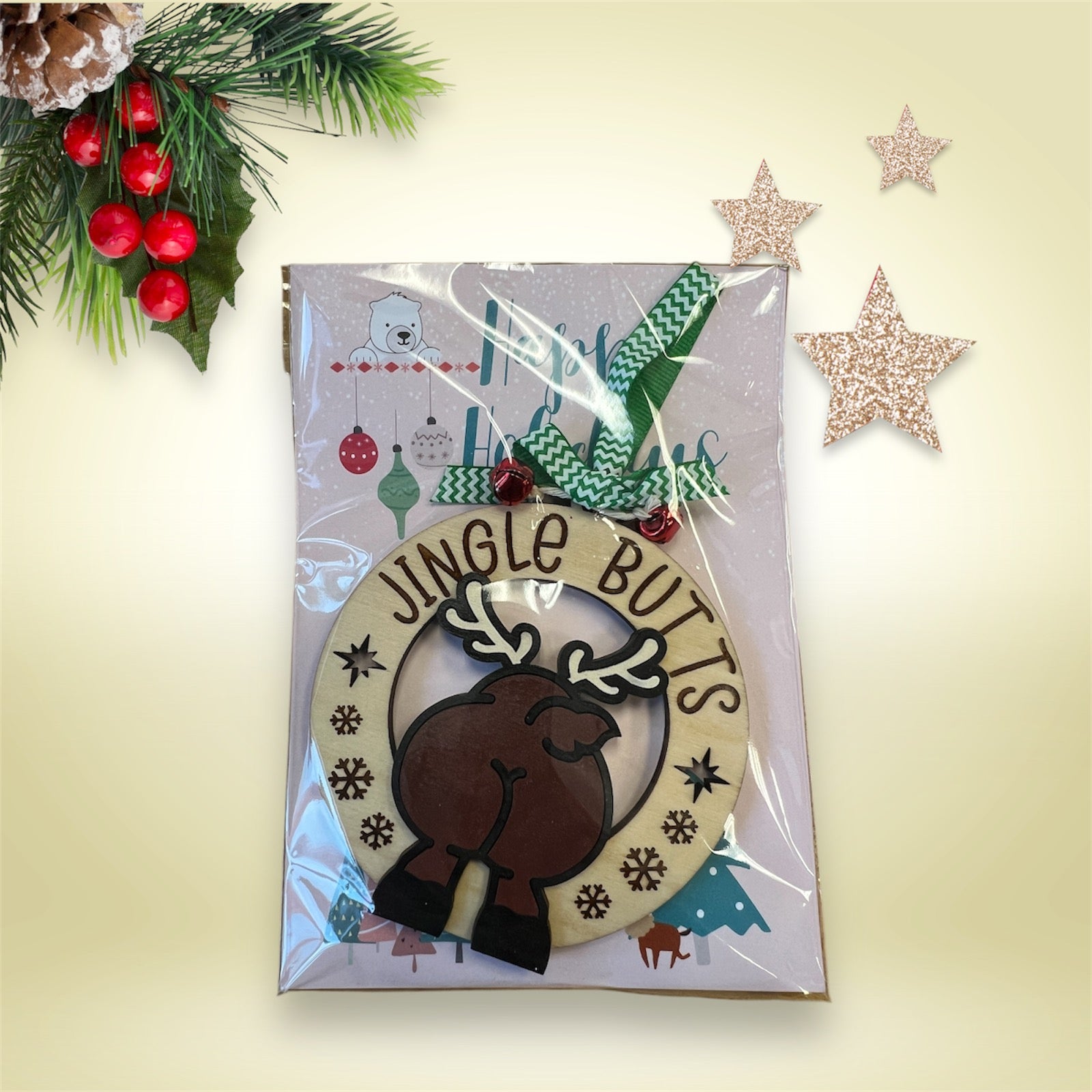 Get ready to giggle your way through the holiday season with the cheekiest decoration around! Meet the Jingle Butts - Reindeer Ornament, where festivity meets fun with a cheeky twist. Perfect for those who love a dash of humor and a sprinkle of whimsy in their holiday decor.