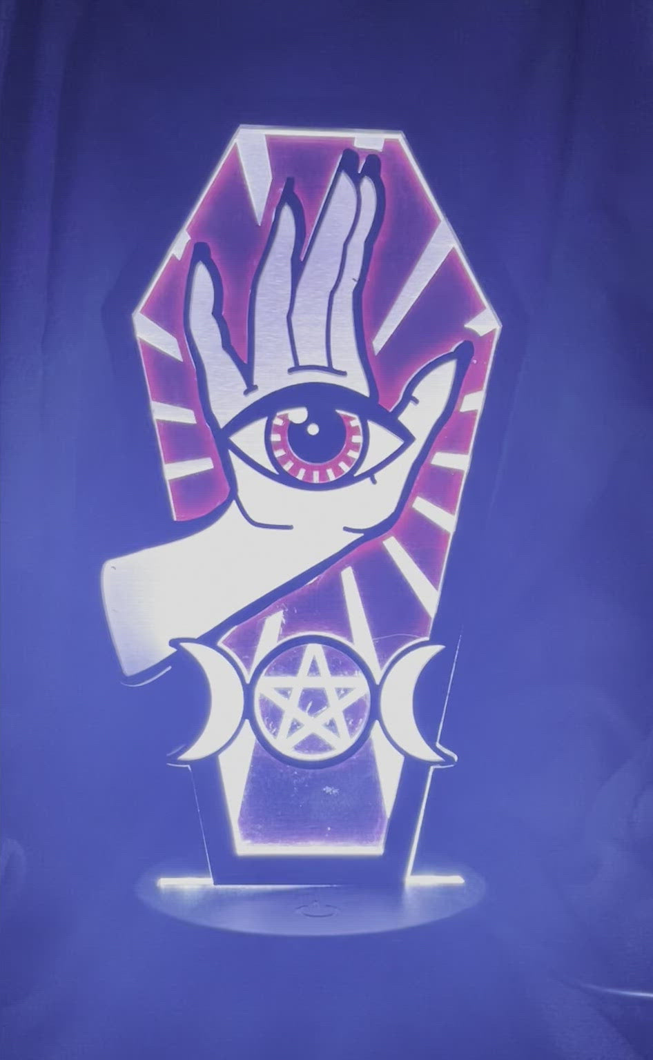 Comes with the lighted base, with the option of using batteries or a USB cord (included) to use. Comes with a remote to change the colors, and patterns.
