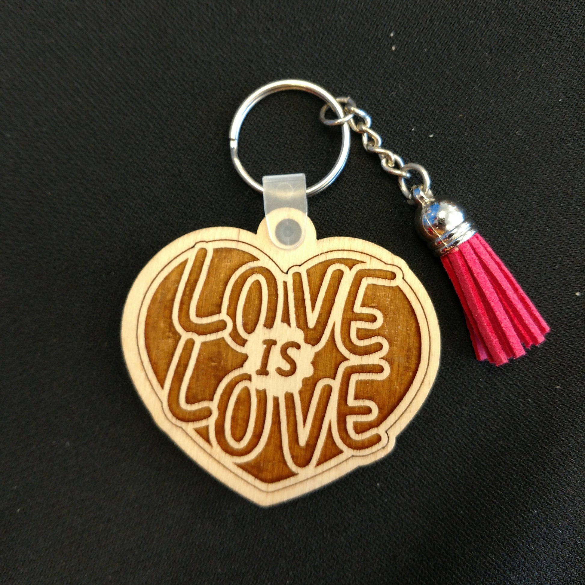 Our birch wood keychains are laser cut to 0.25 inch thick and about 3.5 inches wide. Each keychain comes with a suede tassel in the color of your choice.