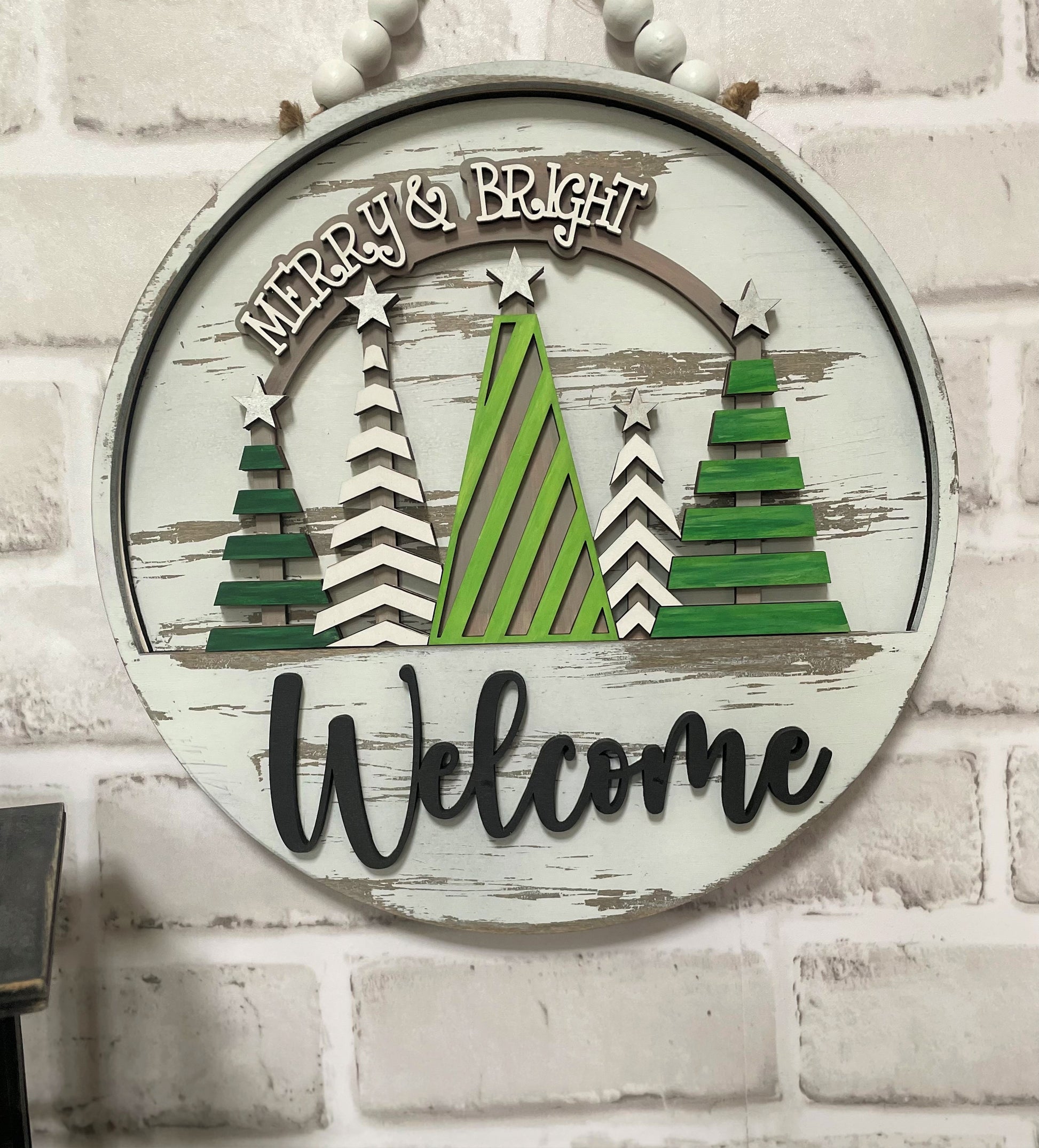 Merry & Bright Christmas Seasonal Insert for Interchangeable rounds or Crate - Ready to Paint