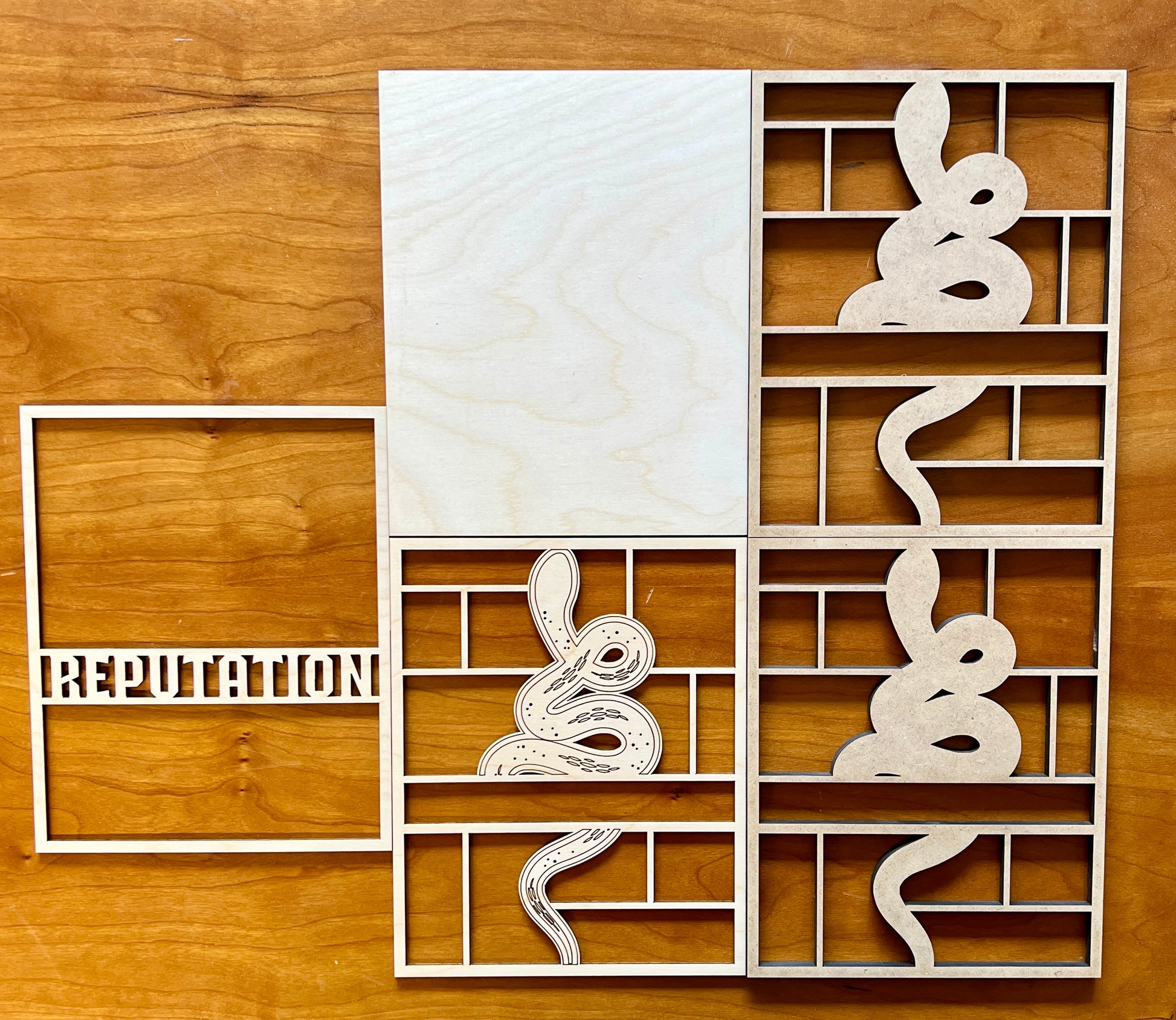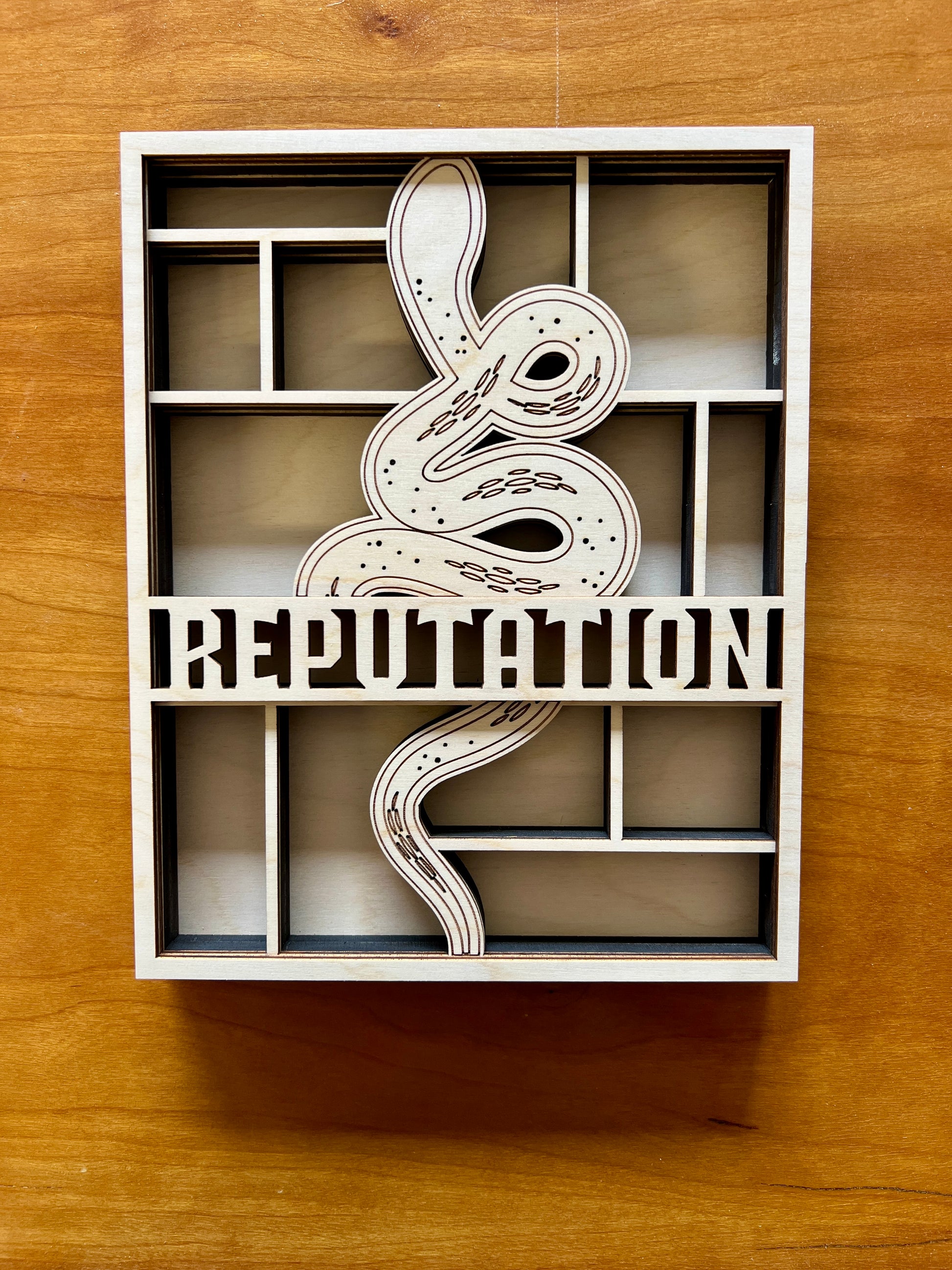 For the Swifties who know all too well—this mini bookshelf is for you! Crafted from precision laser-cut wood, this DIY kit features the iconic Reputation snake design woven through the word “REPUTATION,” surrounded by cubby shelves to fill with your favorite mini books and trinkets.