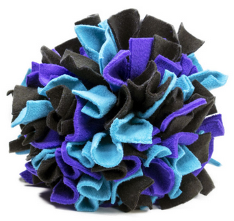 A snuffle ball will provide hours of fun for your dog! Made with an caged rubber ball and fleece strips, this ball is an irresistible toy. Similar to a snuffle mat, it creates an interactive toy for your pet. Stuff it full of treats, roll it around, bounce it, or play tug, this mental exercise will help your dog develop problem-solving skills as they are rewarded when they remove the treats. Our snuffle balls come in 2 different sizes. Small: 3.5” caged rubber ball with 1-3 inches of fleece (small to medium dogs) Large: 5" caged rubber ball with 1-3 inches of fleece (medium to large dogs)