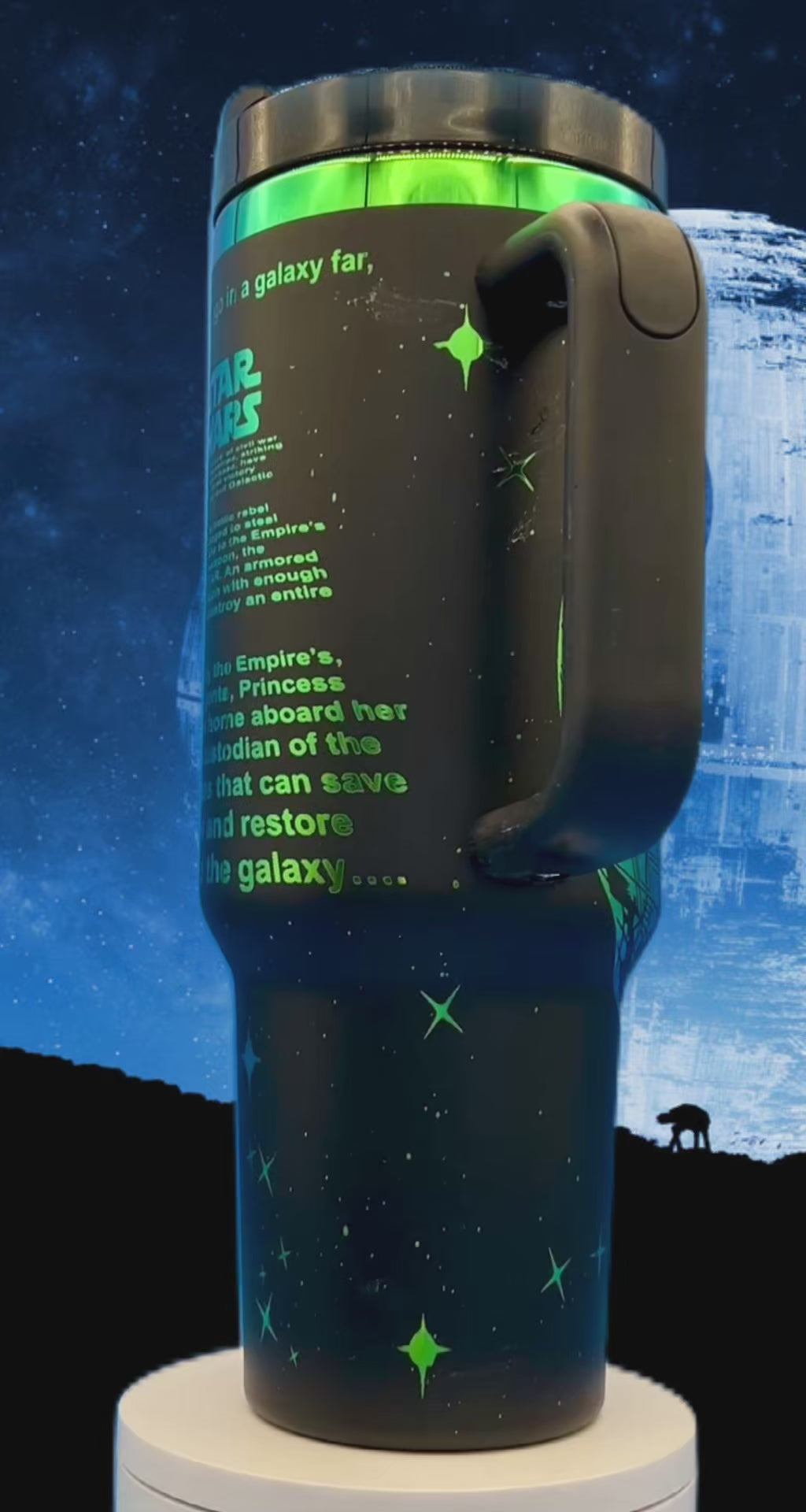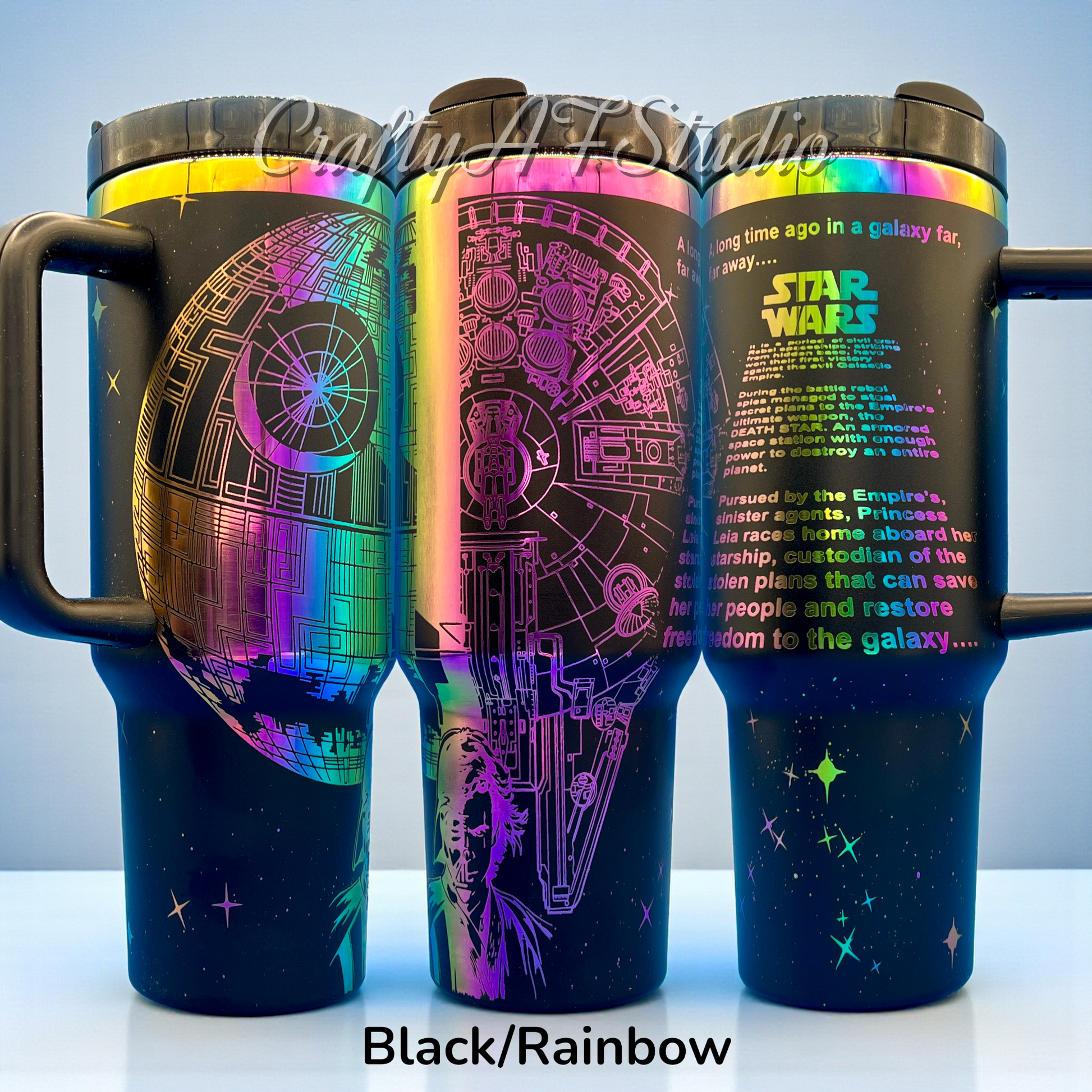 Embark on a galactic adventure with our 40oz light Vs. Dark Two Face Tumbler! 🌌 This out-of-this-world tumbler features a laser-engraved opening crawl that will transport you to a galaxy far, far away with every sip. Perfectly balanced with iconic imagery on both sides, it's like having the light and dark sides of the Force in your hand! Crafted for ultimate hydration battles, this tumbler is your trusty sidekick for every mission, from conquering the workday to lounging on Tatooine. Get ready to sip like a Jedi master or a Sith lord! ⚔️